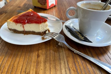 Buscamos un sitio para parar a desayunar y el sitio nos encantó. Es pequeño pero acogedor, el personal es simpático y la comida estaba muy bien ♥️